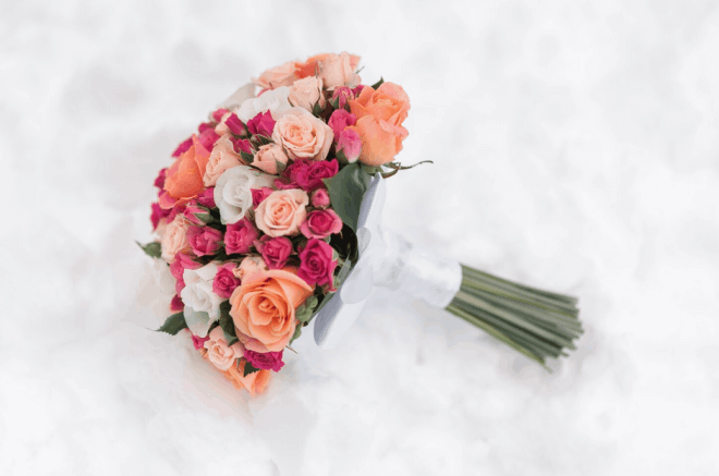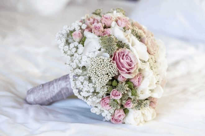 Luxurious wedding flowers bouquet with soft tones of ivory, blush, and green. Designed to match contemporary bridal aesthetics. Adds charm and tenderness to the ceremony.